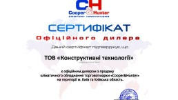 ТОВ “КОНСТРУКТИВНІ ТЕХНОЛОГІЇ” отримало статус офіційного дилера “Cooper&Hunter”.